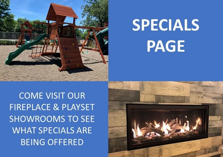 Visit our specials page to see some of our display models at a discounted rate! SAVE by purchasing one of our in-store fireplaces or playsets, while still receiving our top-notch service and delivery.